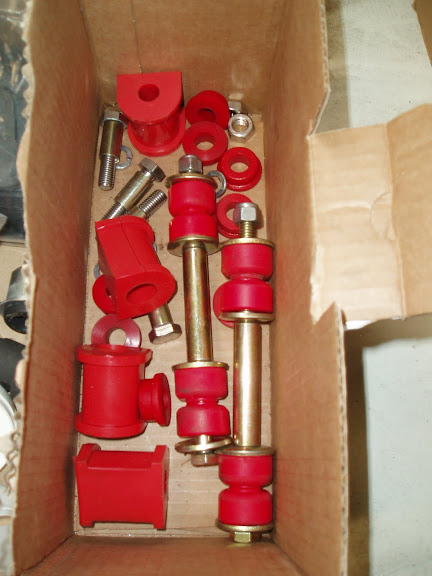J'ai ainsi commandé à neuf et en PU tous les silents blocs de triangles, kit de réparation de lames avant, rotules inférieures et supérieur, kit complet pour la barre stab, kit réparation étriers avants (disques et plaquettes déjà neufs), roulements avant, ... En gros, tout le train avant va être fixer et suspendu à des éléments neufs et rénovés pour les parties métalliques.